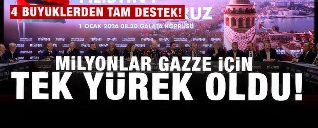 Milli İrade Platformu ile Beşiktaş, Fenerbahçe, Galatasaray ile Trabzonspor’un yöneticileri, Filistin’deki katliama “dur” demek için 1 Ocak’ta Galata Köprüsü’nde düzenlenecek eyleme vatandaşları davet etti.
