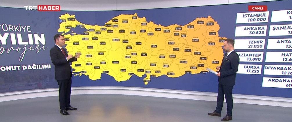 Nüfus yoğunluğuna göre Türkiye genelinde 500 bin konut oluşturulacak. İstanbul’da ise 100 bin konut planlıyoruz. Valilerimiz ve belediye başkanlarımız ile görüşerek vatandaşlarımızın ihtiyaçlarını belirledik. Böylelikle 81 ilde talepler doğrultusunda sosyal konut projemizi gerçekleştiriyoruz.