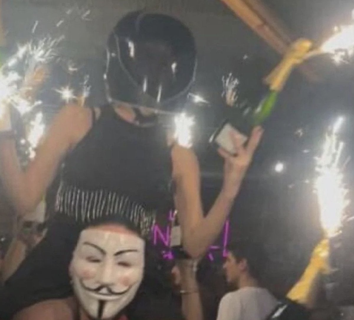 Olayı gören tanıklar, servis personelinin başlarındaki maytaplı süsler ve şampanya şişelerindeki yanmakta olan maytapların tavanı tutuşturduğunu belirtti.